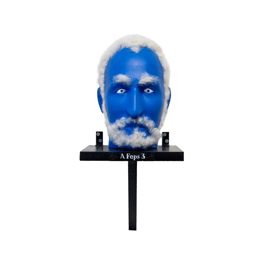 A Fops 3 was cloned from the excavated bones of a Middle Ages executioner. The authorities were in search of a hangman devoid of human feelings, someone with no moral, psychological or physical side effect when executing the most cruel tortures imaginable. Earlier clones of the same medieval executioner, A Fops 1 and A Fops 2, had unsuccessful results. They were weak, immediately suffered from depression, and had to be eliminated quickly. However, with A Fops 3, the scientists succeeded in constructing a superior genetic structure. By injecting the clone with stem cells of a well-known German comedian, a being always ready to perform the most brutal tortures was created. The authorities often lend A Fops 3 to friendly nations. In the past year, for example, he was dispatched in South East Asia and Canada. His bluish skin color is the result of a chemical process that occurred during cloning. When A Fops 3 goes to work he always hums the same tune: I'm Blue – da ba dee da ba dye, da ba dee da ba dye Da ba dee da ba dye, da ba dee da ba dye Da ba dee da ba dye, da ba dee da ba dye Da ba dee da ba dye I'm Blue – da ba dee da ba dye, da ba dee da ba dye Da ba dee da ba dye, da ba dee da ba dye Da ba dee da ba dye, da ba dee da ba dye Da ba dee da ba dye