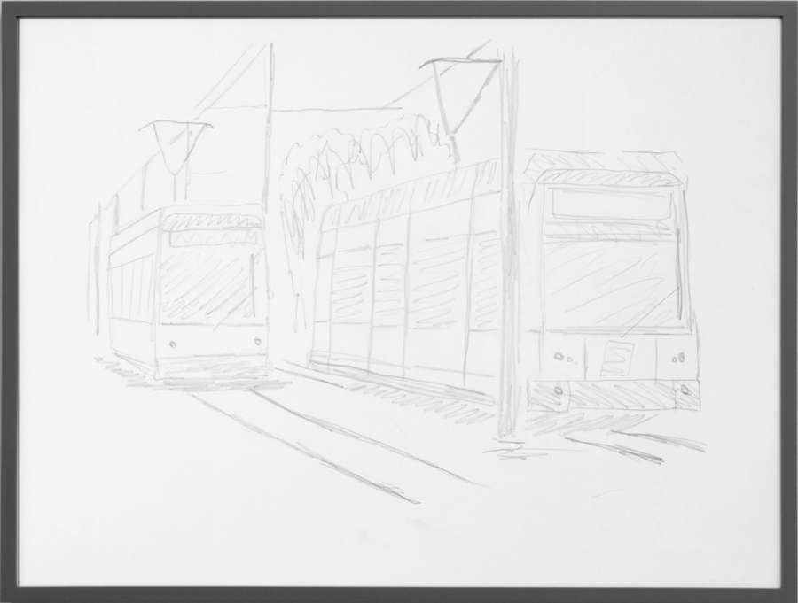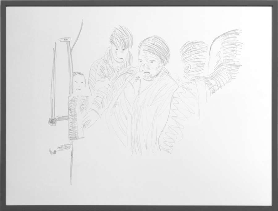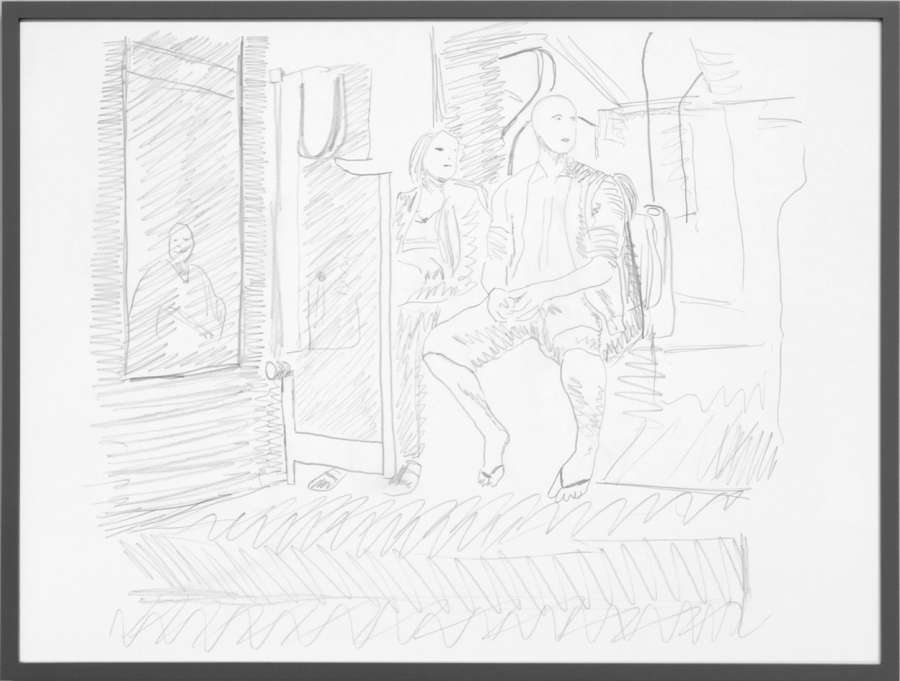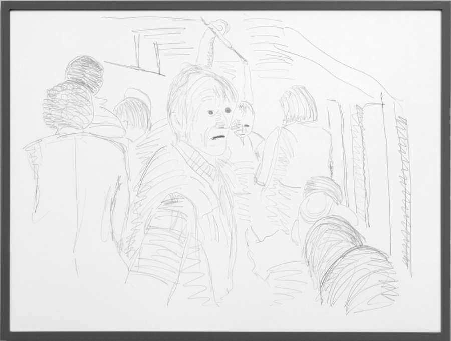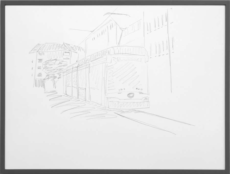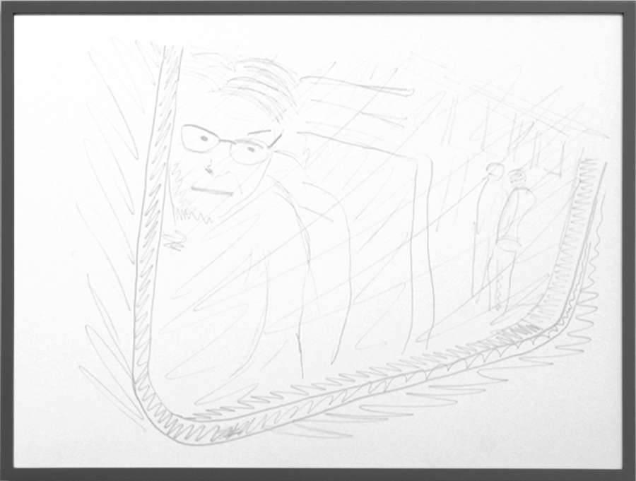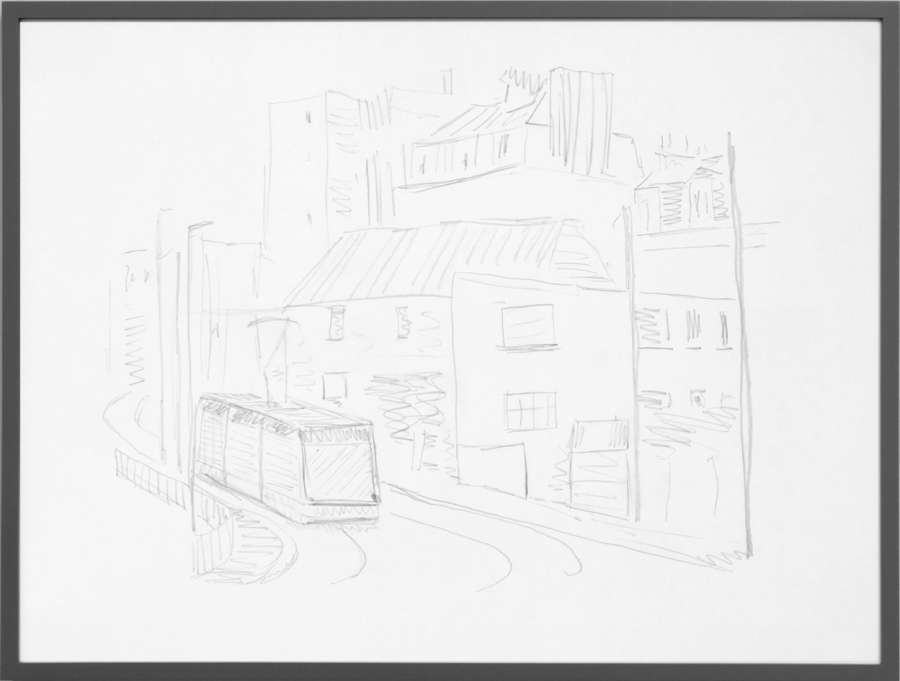 pencil on off-white cardboard in wooden frame, painted grey