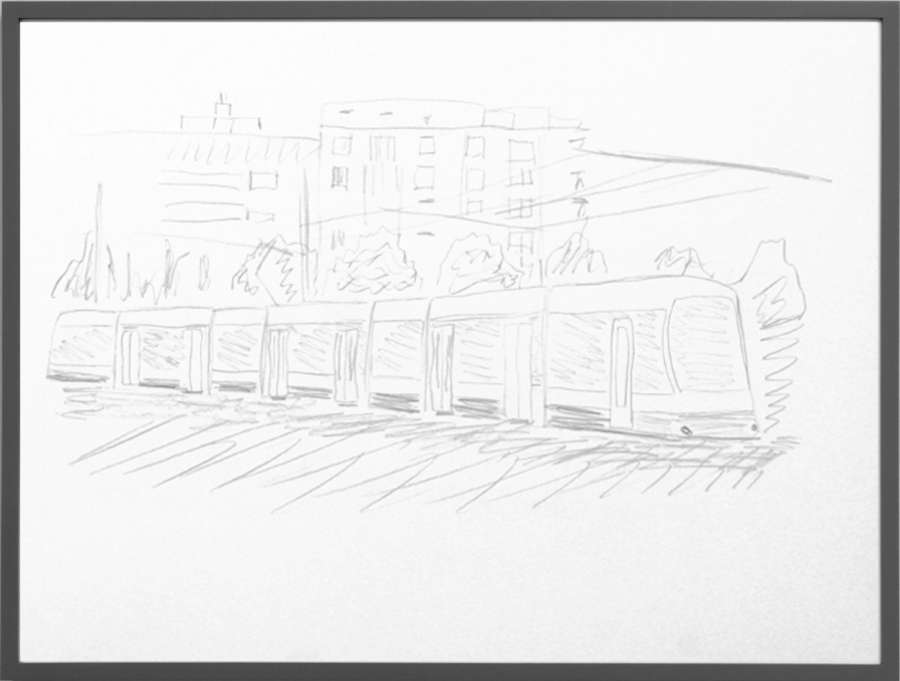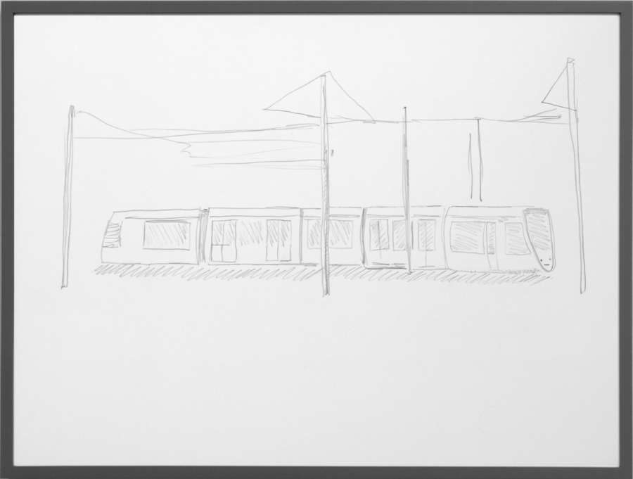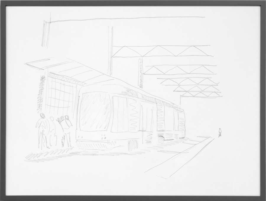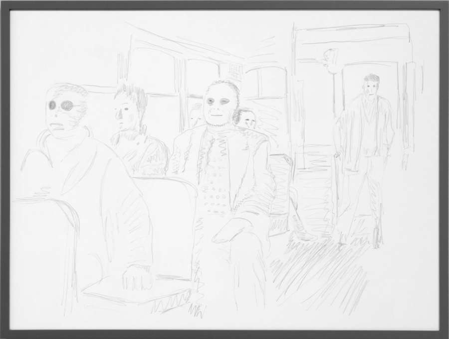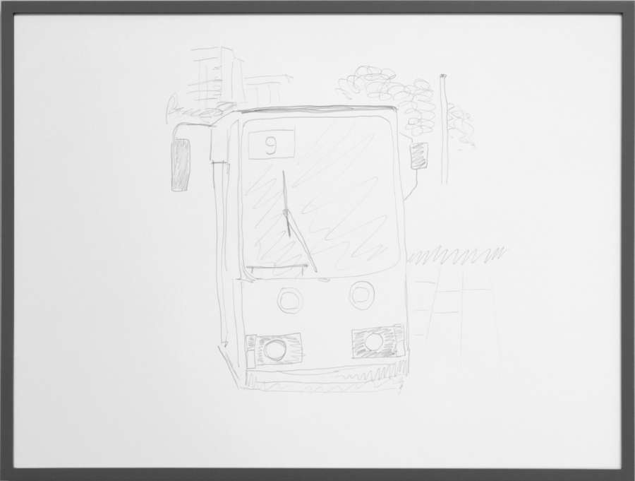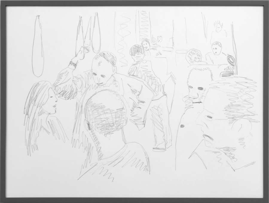 pencil on off-white cardboard in wooden frame, painted grey