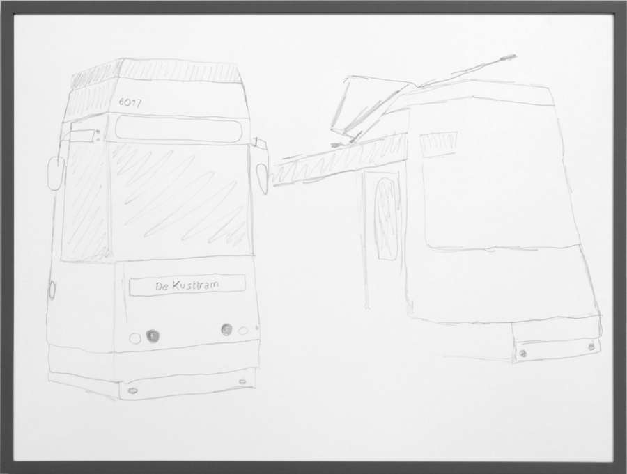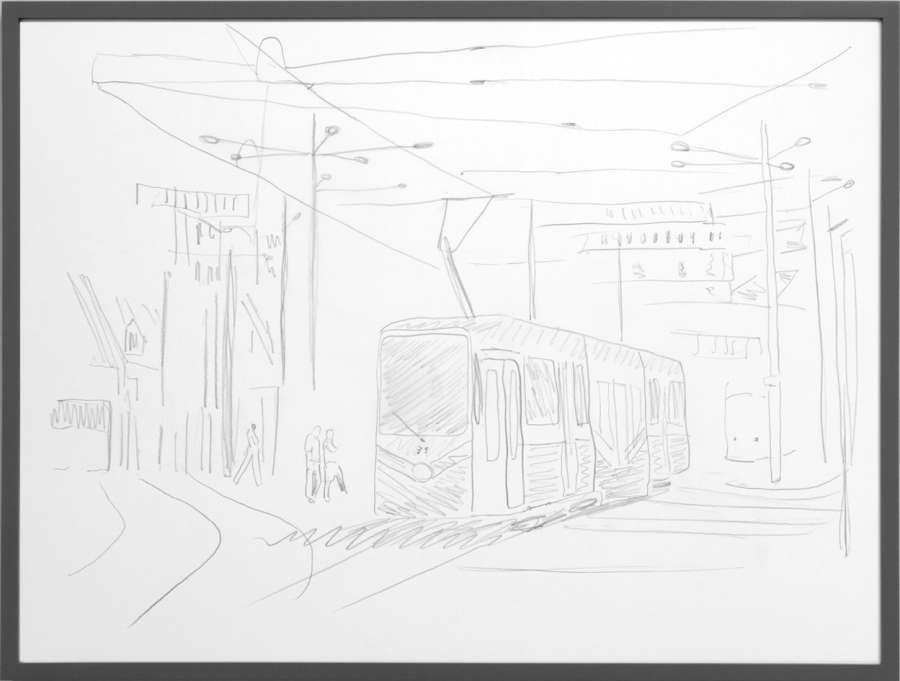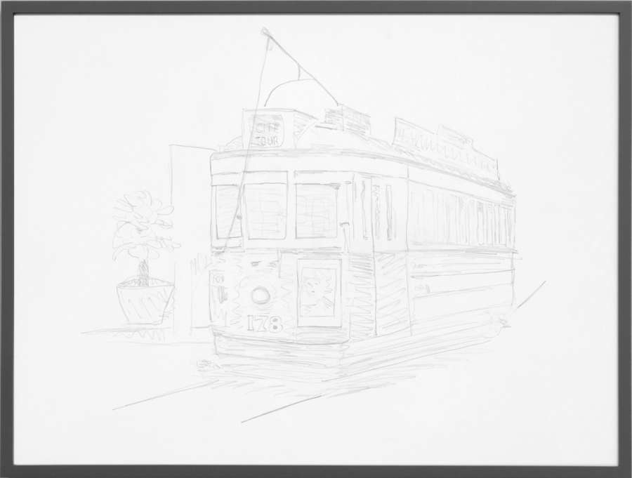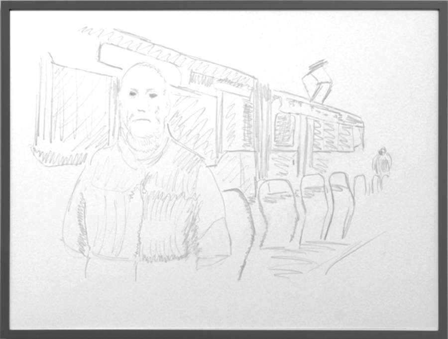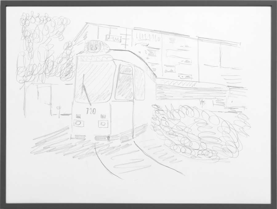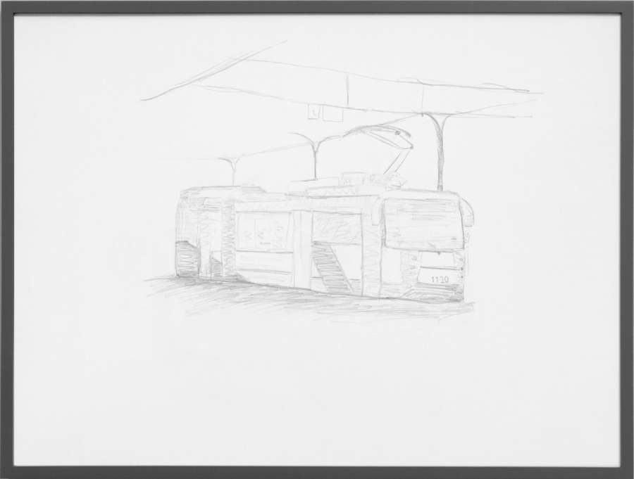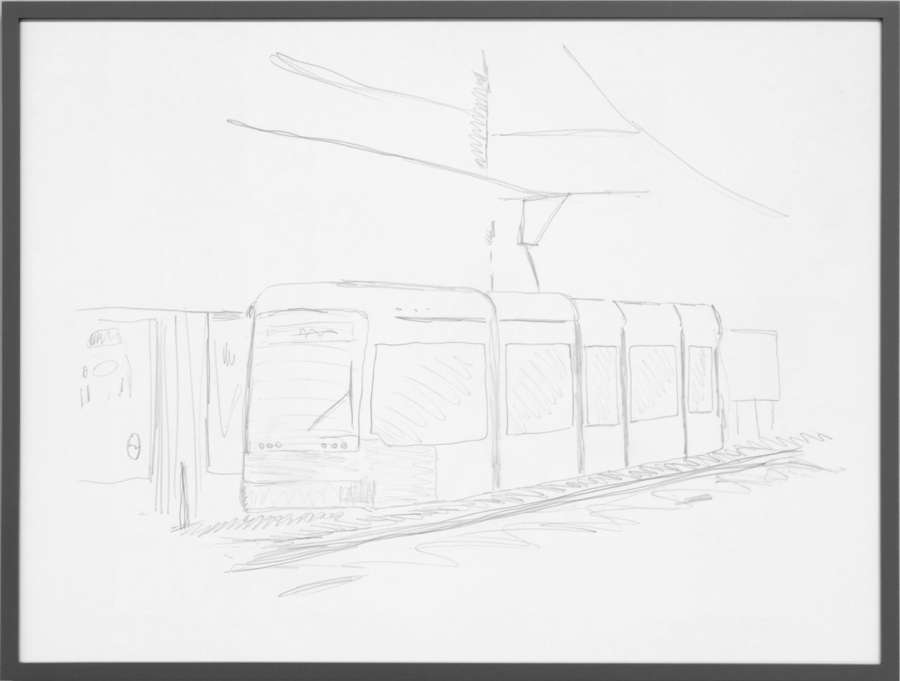 pencil on off-white cardboard in wooden frame, painted grey
